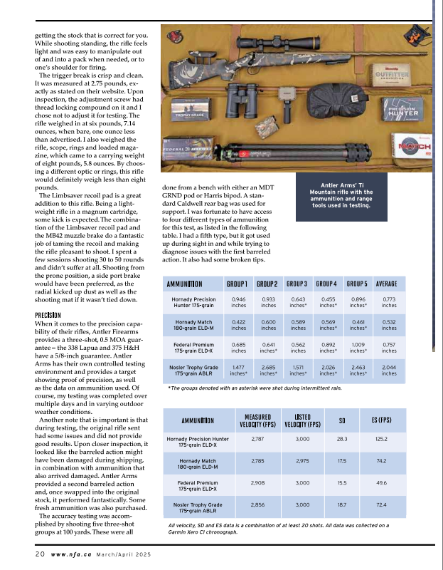 Antler currently offers five different rifle models in 14 colours, 11 chamberings and five stock options. The models currently offered are Expedition, Wild Mountain, Ti Mountain, Carbon Mountain and Rocky Mountain. Check out their website at antlerarms.com for more information.