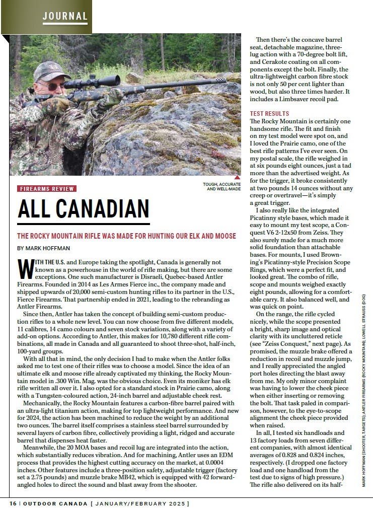 There’s little question this rifle lives up to its billing in every respect. Not only is it a very well-made and robust rifle that would handle the rigours of any elk or moose hunt, it’s also an excellent shooter. Big game beware, the Rocky Mountain is headed your way—and it’s made in Canada!