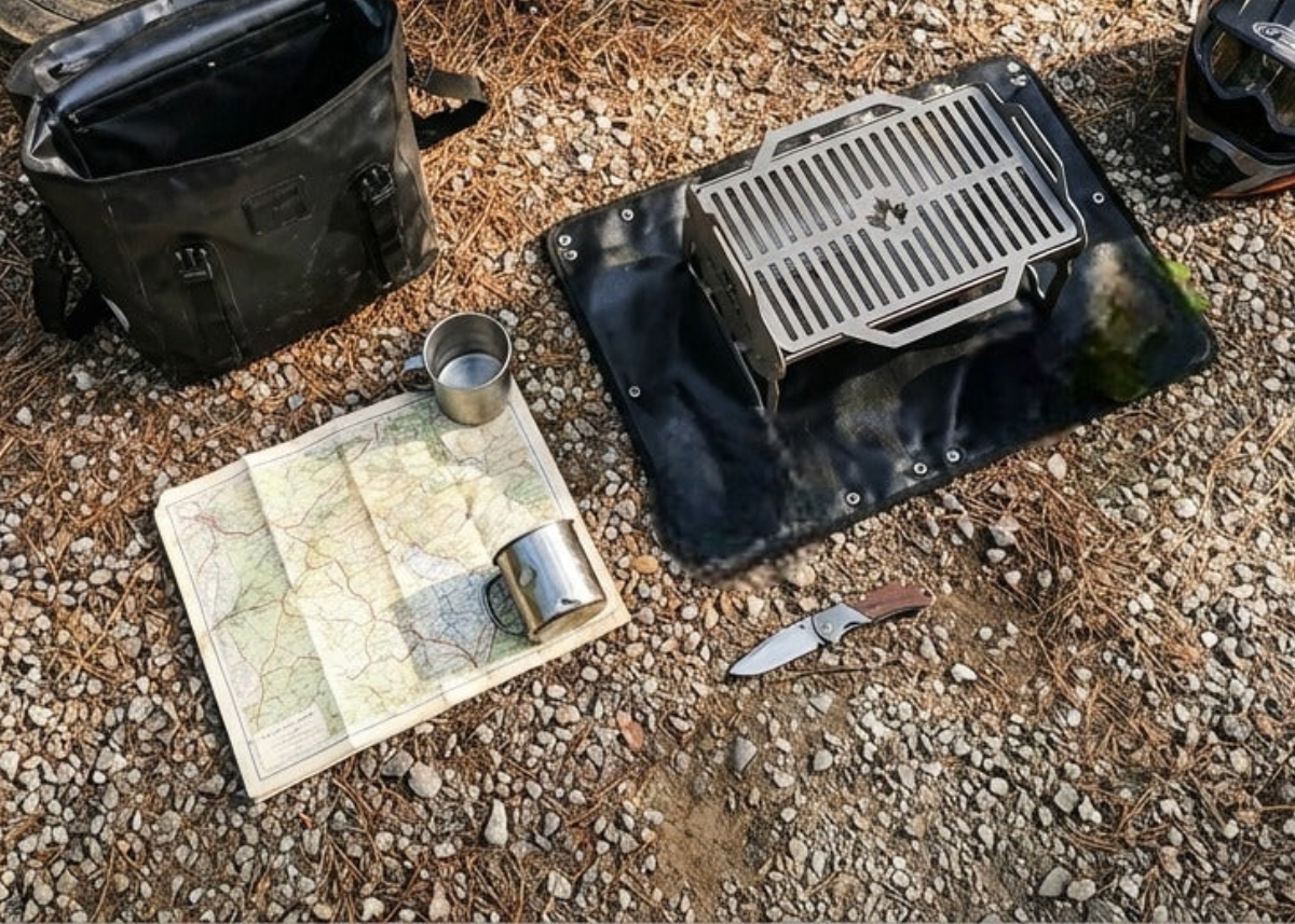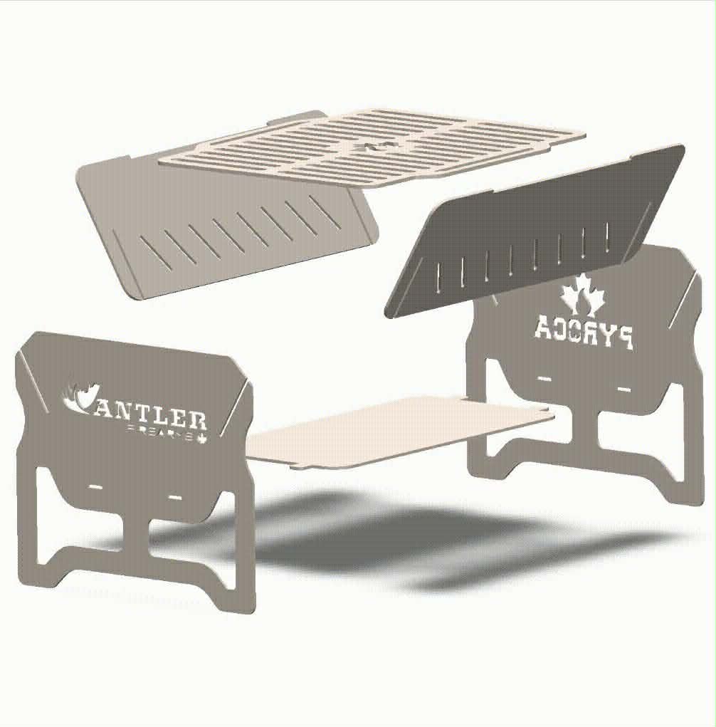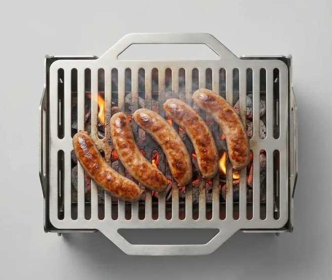 BBQ en acier inoxydable portatif. Démontable, il est livré dans une enveloppe cartonnée.