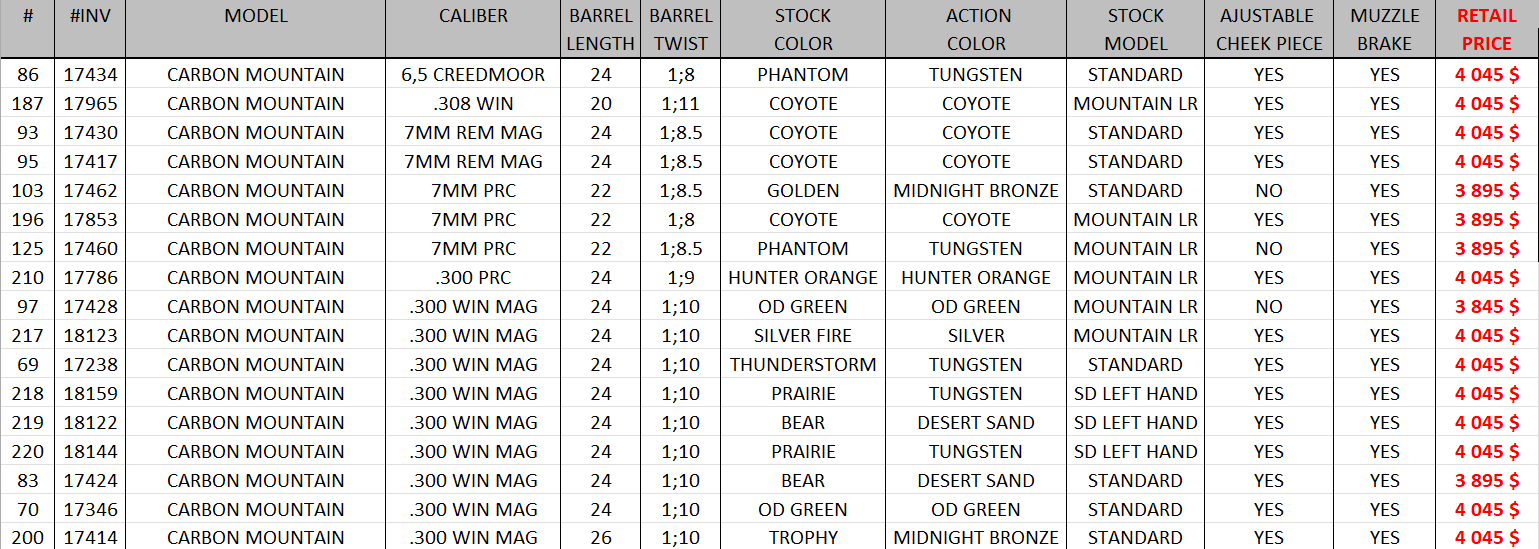 NOUS AVONS PLUSIEURS CARABINES EN INVENTAIRE PRÊTES À LIVRER. JETEZ UN OEIL À L’INVENTAIRE EN LIGNE OU CONTACTEZ-NOUS AU : Ventes@Antlerarms.com ou 418-449-4142 p:234