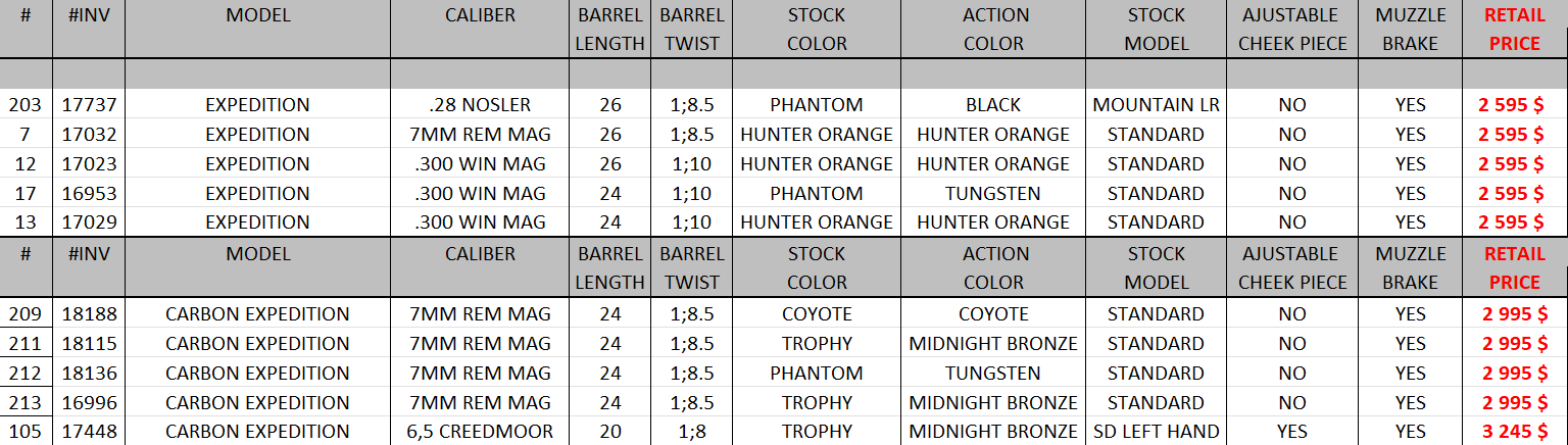 JETEZ UN OEIL À L’INVENTAIRE EN LIGNE OU CONTACTEZ-NOUS AU : Ventes@Antlerarms.com ou 418-449-4142 p:234