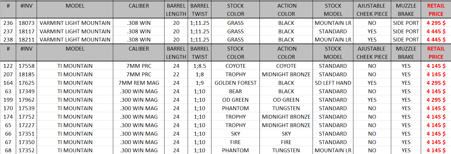 INVENTAIRE – TI & VARMINT LIGHT MOUNTAIN 2026