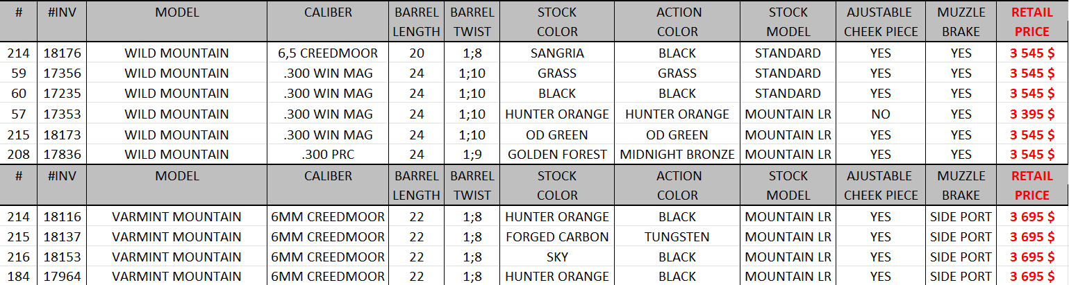 INVENTAIRE – WILD & VARMINT MOUNTAIN 2026
